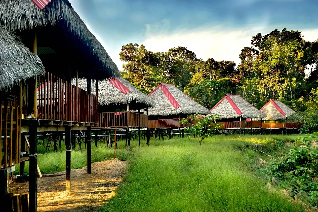The ceremonial room is the sacred heart of our retreat, where transformative Ayahuasca and Kambô ceremonies unfold under the guidance of shaman and the jungle’s spirits. Crafted from local hardwoods and thatched with palm leaves, this open-air maloca is designed to blend seamlessly with the surrounding selva. Its circular layout fosters a sense of unity, with soft lighting from solar-powered lanterns casting a gentle glow during nighttime ceremonies. Cushioned mats and blankets create a comfortable space for introspection, while the open walls allow the jungle’s symphony—birdsong, rustling leaves, and distant calls—to weave into the experience. This sacred space holds the energy of countless healings, offering a serene and powerful environment for your spiritual journey.